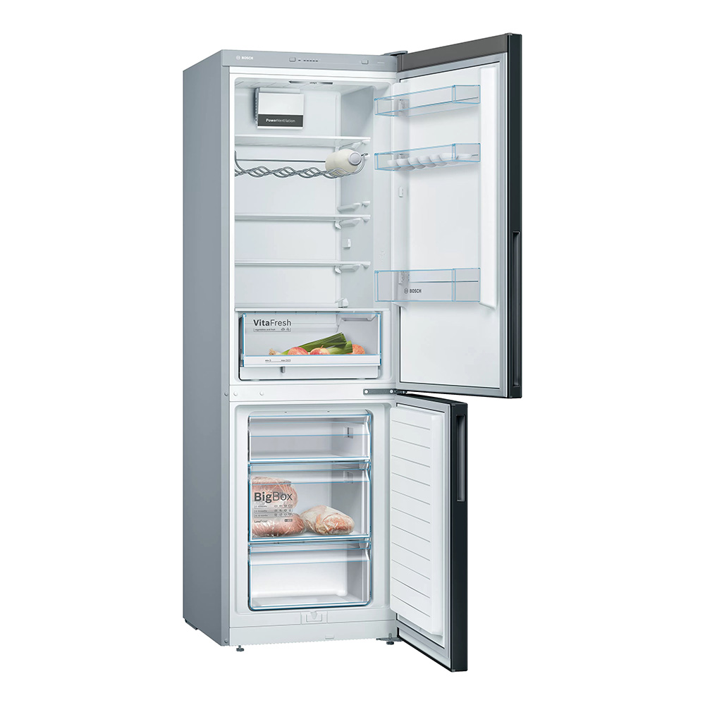 Prostostoječi hladilnik z zamrzovalnikom spodaj Bosch KGV36VBEAS. Z LED lučmi, ki porabijo manj energije kot običajne luči in trajajo celotno življenjsko dobo aparata. Navdušile vas bojo njegove številne lastnosti in funkcije, kot so izjemno globok zamrzovalni prostor Big Box za razporeditev posod za zamrznjeno hrano ali večjih zamrznjenih živil, kot so pecivo in pice, steklene police Easy Access, ki se lahko izvlečejo do globine 12 centimetrov, zaradi česar je še posebej preprosto odlaganje in odstranjevanje živil iz hladilnika in sistem Low Frost, ki zmanjša nastajanje ledu v zamrzovalniku in tako zmanjša pogostost odmrzovanja.