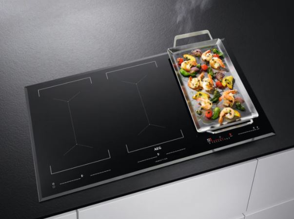 Indukcijska plošča AEG IKE96654FB širine 91 cm ima kar 6 kuhališč s funkcijo PowerBoost. Levi, srednji in desni kuhališči je mogoče s funkcijo Bridge povezati v eno večje kuhališče. Če veste, da bo kuhanje zahtevalo hitre in pogoste spremembe temperature, uporabite funkcijo PowerSlide, s katero premaknete posodo, ne da bi spremenili izbrani način z uporabo treh predhodno določenih temperaturnih nastavitev: visoka, srednja in nizka. Kuhalno ploščo odlikuje tudi edinstvena brezžična povezava Hob2Hood, ki samodejno vklopi in nastavi intenzivnost ventilatorja kuhinjske nape (določeni modeli) glede na potrebe pri kuhanju. Plošča ima med drugimi funkcijo Stop&Go za kratke prekinitve kuhanja, timer, indikator preostale toplote in možnost varnostnega zaklepanja.