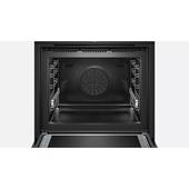 Vgradna pečica z mikrovalovno funkcijo Bosch HMG6764B1 serije 8. Za optimalne rezultate pečenja senzor PerfectBake analizira vlažnost v pečici in samodejno spremeni način ogrevanja, čas pečenja in temperaturo. Tri izjemno občutljive merilne konice na mesni sondi PerfectRoast omogočajo senzorju, da izračuna idealno temperaturo središča hrane do stopinje in sekunde. Ponev ali rešetko postavite na katero koli od štirih ravni za dosledno popolne rezultate s 4D vročim zrakom. Če niste prepričani, katero nastavitev pečice uporabiti, vam pomaga funkcija Assist.