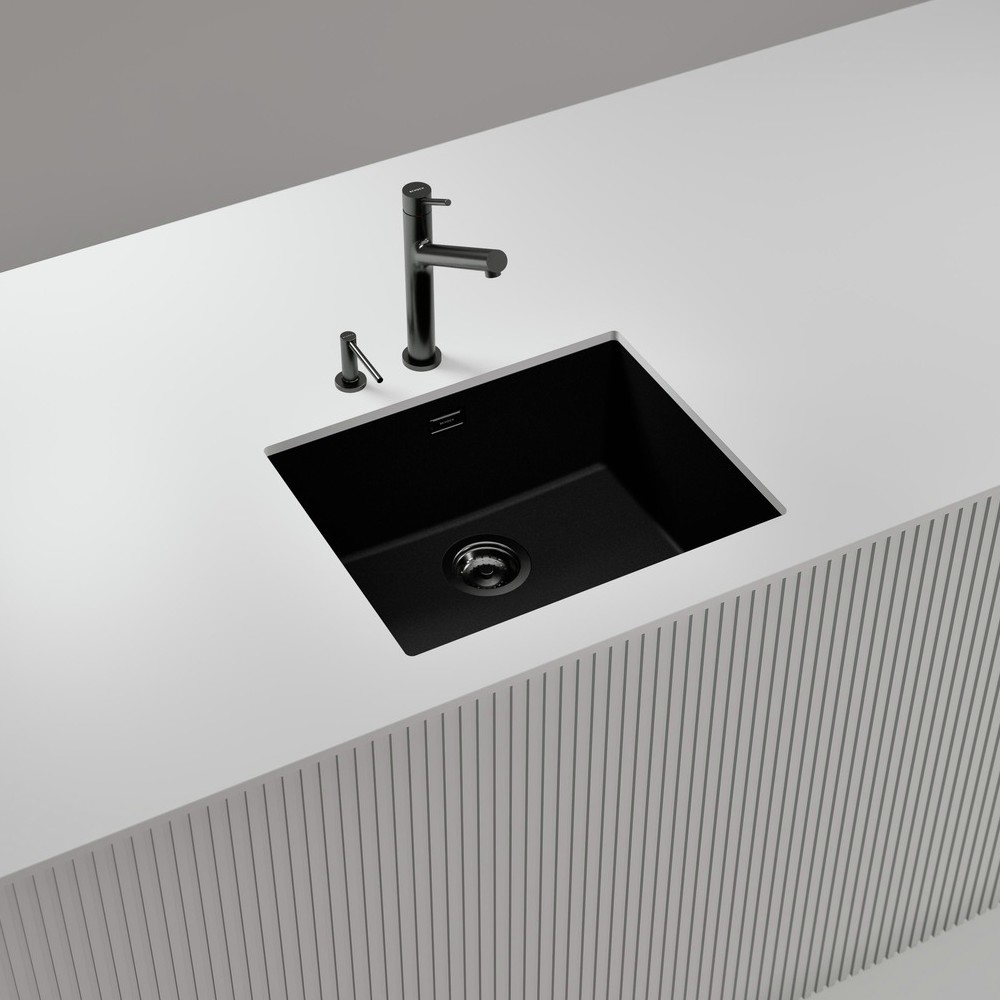 Dovolite si biti drzni in izberite kuhinjsko armaturo DION gunmetal. Za popolno ujemanje pomivalno korito opremite z dodatno opremo v isti barvi kot kuhinjska armatura.