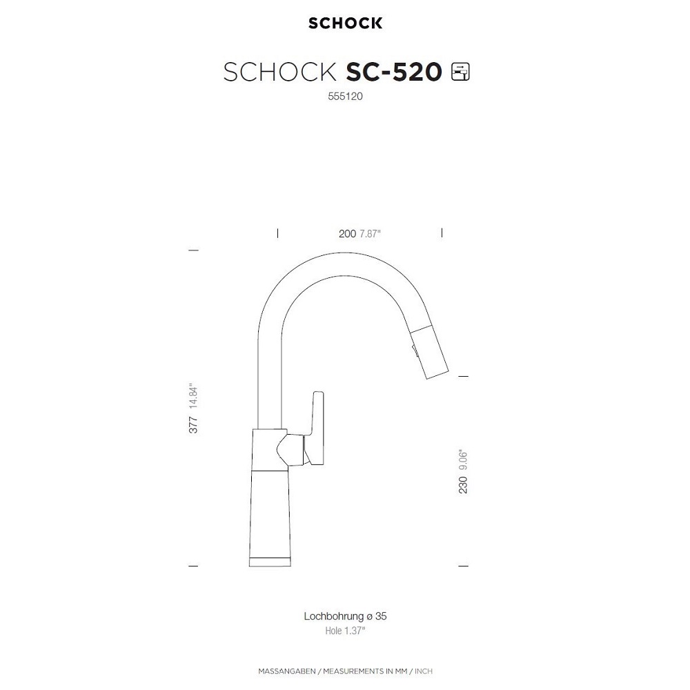 Kuhinjska armatura SCHOCK SC-520 555000 je elegantna armatura z visokim izlivom, izvlečno ročko ter tušem. En del armature je kromiran, drug del pa je narejen iz naravnega kamna Cristadur®. Kamniti del armature je popolnoma enak kot za pomivalna korita SCHOCK, zato lahko s to armaturo dosežete popolno ujemanje z vašim koritom SCHOCK.