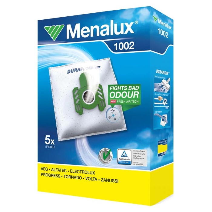 Visokokakovostne vrečke Menalux so zasnovane tako, da ustrezajo vašemu sesalniku in ohranjajo njegovo najboljšo učinkovitost. Primerne so za več modelov sesalnikov.
