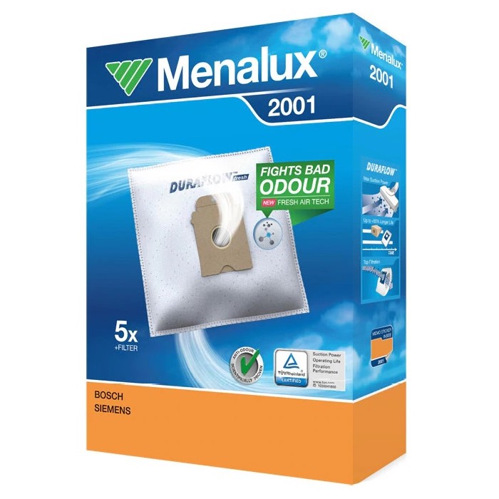 Visokokakovostne vrečke Menalux so zasnovane tako, da ustrezajo vašemu sesalniku in ohranjajo njegovo najboljšo učinkovitost. Primerne so za več modelov sesalnikov Bosch in Siemens.